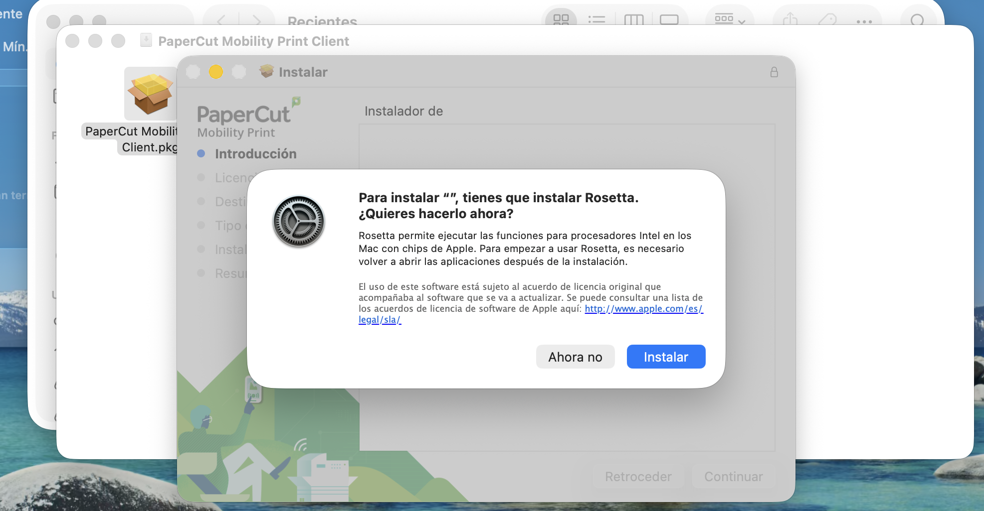 - Si pide la instalación de Rosetta (para hacer compatible la aplicación con los procesadores Apple Silicon), hacer clic en Instalar.