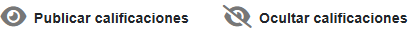 Para poder calificar, la opción "Calificaciones publicada" no debe tener el valor "Sí", por lo que si tiene que hacer modificaciones en la calificación de alguna solicitud, previamente tiene que desactivarla, pinchando sobre el botón "Ocultar calificaciones"