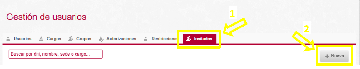 3.- En la pantalla de gestión de usuarios seleccionamos en primer lugar la opción “Invitados” y a continuación pulsamos en el botón “+ Nuevo”: