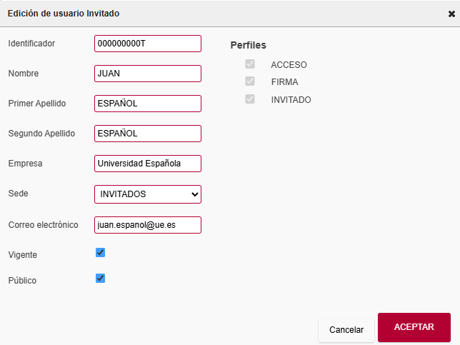 Alta de un usuario invitado
