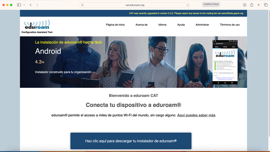 A continuación se indica el procedimiento para configurar su conexión a eduroam de forma automática y segura. Si no puede instalar software en su dispositivo, tiene la información para configurar manualmente la conexión en Parámetros de configuración manual de eduroam para usuarios con cuenta de la UCLM