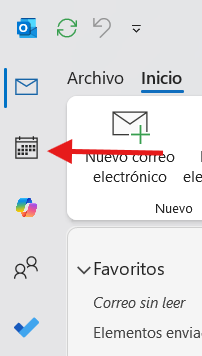 - Haz clic en Calendario en la parte superior izquierda de la ventana de Outlook.