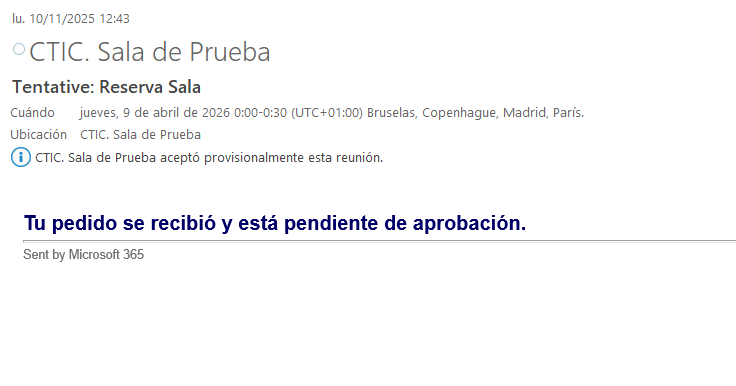 Cuando el administrador Rechace o Acepte la reserva recibirás otro correo.