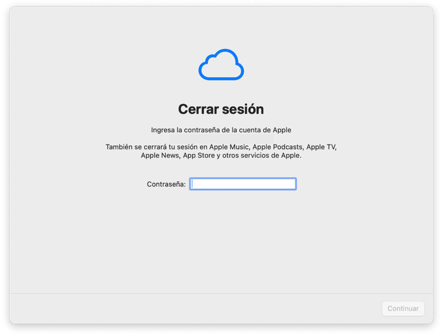 - Nos solicitará cierre de sesión de nuestra cuenta de iCloud.