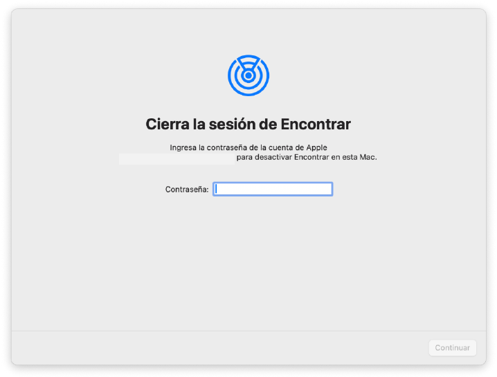 3. En el siguiente paso, nos pedirá la contraseña de nuevo para desactivar Encontrar este Mac.