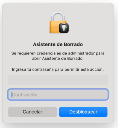4. El asistente de borrado nos pedirá la contraseña de administrador del equipo para continuar con el proceso.
