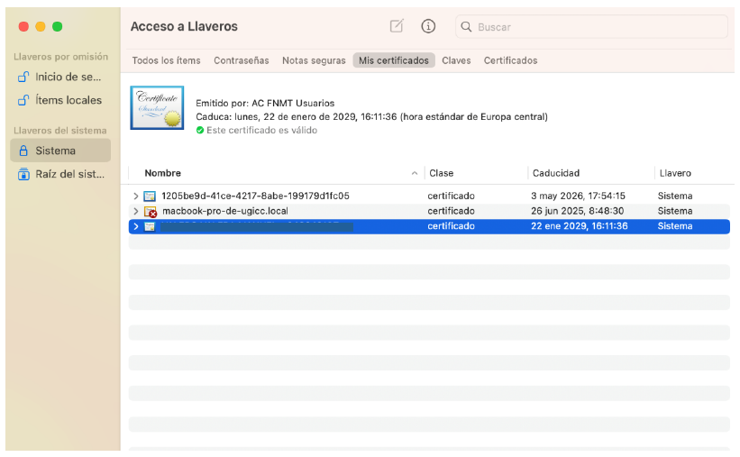 03. Ya nos aparecería en nuestro almacén de certificados del equipo.